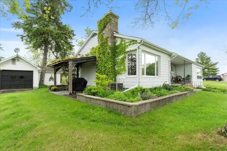 Future Development Potential on 2 Acres! Stylish 3-Bedroom Bungalow on 2 Private Acres 404 Bridge St. West. Welcome to this beautifully maintained 3-bedroom bungalow, nestled on a peaceful and private 2-acre lot in town. Offering 1,557 sq. ft. of bright and airy main floor living space, this home combines the best of country charm and modern convenience. Inside, you’ll find hardwood floors and ceramic tile throughout, with carpet in the Primary, enjoy windows at every corner that bathe the space in natural light, and a cozy wood-burning fireplace perfect for relaxing evenings at home. The spacious layout includes a well-sized living room, dining area, bonus main floor family room, 1.5 bathrooms, and three comfortable bedrooms, making it ideal for families, retirees, or those seeking single-level living. Outside, enjoy the serenity of your expansive property with mature trees and plenty of space to garden, entertain under the pergola on the stone patio, or simply unwind. Walkout door at top of basement stairs. The attached one-car garage provides convenient access to the home, and the versatile outbuilding currently set up as a summer kitchen, offers endless possibilities for hobby space, a guest suite, man-cave/she-shed or outdoor entertaining. Serviced by drilled well and septic, this property offers privacy, space, and potential in a sought-after location. Highlights also include 200 amp service, central vac and large basement awaiting your personal touch with direct access to the garage. Whether you’re looking to downsize, invest, or enjoy the quiet of rural living close to amenities, 404 Bridge St. West is ready to welcome you home, close proximity to Mary Ann Sills Park, Ballet School, Centennial Highschool and Sir John A MacDonald Schools, and future home of the YMCA