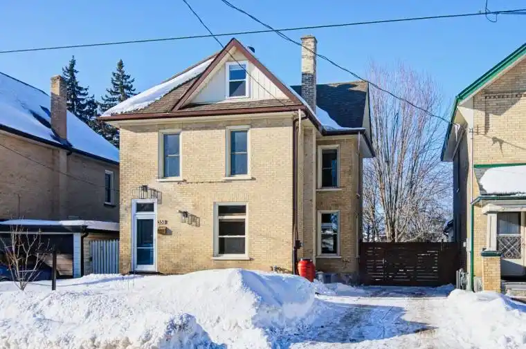 If you have been looking for a home with character, this all brick 2.5 storey century home delivers. Travertine flooring from the front entry carries through to the kitchen and dining area, where there is plenty of space for family meals, hosting, and everyday living. The main floor includes a comfortable living room with hardwood flooring, a 2 piece bath, and a sliding door that opens to a large deck and fenced backyard. Whether it’s kids running around, pets enjoying the yard, or quiet evenings outside, this space is ready for it. Upstairs offers three bedrooms and a full bathroom, plus a bonus loft on the top floor. It is unheated and not included as finished space, but it is a great bonus area for play, hobbies, or a creative studio. In the back yard is a detached heated 1.5 car garage with workshop. This home blends classic style with everyday practicality. Easy access to downtown, shopping, bus route, and schools.