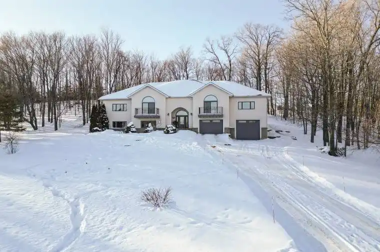 Welcome to 27 Collins Drive, a beautifully designed home in sought-after Rockwood Shoreline Estates. Set on nearly 2.5 acres of private, natural surroundings, this bright, open-concept residence offers over 3,500 sq ft of finished living space. The main level features granite countertops and stainless-steel appliances in the kitchen, along with generous living areas ideal for everyday living and entertaining. With 4 bedrooms and 3 full baths, the home provides exceptional flexibility for families, guests, or multi-generational living. A standout feature is the full in-law suite with its own kitchen, spacious bedroom with ensuite, and dedicated laundry-perfect for extended family or independent living. Additional highlights include main-floor laundry, easy backyard access, and a private rear deck for outdoor relaxation. Residents also enjoy exclusive deeded access to Collins Lake for swimming, paddling, and fishing. A rare opportunity to enjoy space, versatility, and a peaceful lakeside lifestyle.