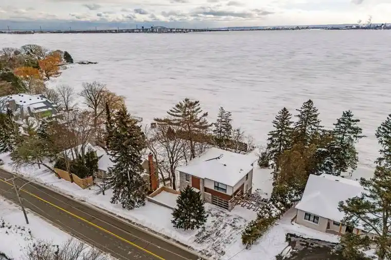 An exceptional waterfront residence, fully renovated with Addition from top to bottom in 2020,offering breathtaking views of Lake Ontario and over 70 ft of direct waterfront. This stunning home features 3+1 bedrooms, 4.5 bathrooms, and approximately 3,000 sq. ft. of beautifully finished living space, plus a detached guest house of approx. 400 sq. ft. The open-concept main level is designed to maximize natural light and panoramic lake views, ideal for entertaining. The second level offers three spacious bedrooms, each with its own private ensuite. The walk-out basement includes a generous family room, an additional bedroom , and direct access to the lake-just steps to the shoreline. Nestled in a tranquil, tree-lined neighbourhood near the Burlington Golf & Country Club, and minutes to downtown Burlington, GO Train, shopping, schools, and waterfront trails. A rare opportunity to own a truly remarkable luxury waterfront home.