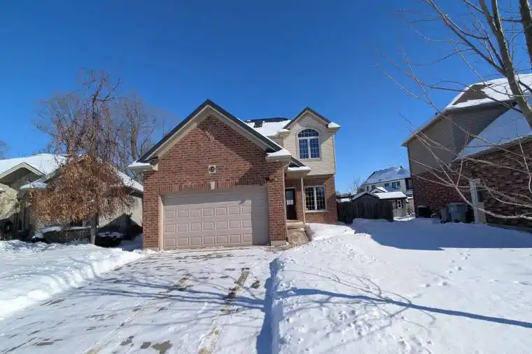 Open concept family home in sought after Strathroy neighbourhood. Bright living room open to dining area and kitchen beyond. Kitchen features wood cabinets with centre island, pantry and granite counters. Convenient main level laundry with entrance to double car garage. Upstairs features three good size bedrooms including primary suite with ensuite and walk-in closet. Finished lower level is great for family movie night or gatherings. Patio door to huge rear yard. Close to the highway make this an ideal location for commuters. Vacant and ready for quick possession. Sold as is.