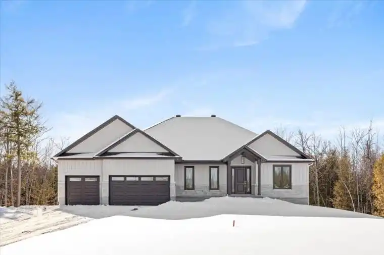 The Burgess is a beautifully crafted 2,169 sq.ft. bungalow by BLD Homes, set in the sought-after McEwen’s Mill community in Carleton Place/Beckwith. Blending modern elegance with rural tranquility, the home sits on a spacious 1.13-acre estate lot just minutes from downtown Carleton Place and Mississippi Lake-offering peaceful country living with convenient access to amenities. Its timeless exterior features premium stone and James Hardie board-and-batten siding for lasting durability and curb appeal, while the expansive lot provides privacy and space for outdoor living. Inside, an open-concept layout filled with natural light creates a warm, welcoming atmosphere ideal for everyday comfort and entertaining. The designer kitchen showcases custom cabinetry, quartz countertops, and refined finishes that balance beauty and function. Three generously sized bedrooms offer restful retreats, complemented by two spa-inspired bathrooms with modern fixtures and elegant tilework. Built for efficiency and longevity, the home includes an insulated concrete form (ICF) foundation, luxury vinyl plank flooring, premium lighting, and custom millwork throughout. Surrounded by nature yet close to shops, dining, boating, fishing, and trails, The Burgess is perfect for families, downsizers, or anyone seeking comfort, style, and space in one of Lanark County’s and the Ottawa Valley’s most desirable communities. BLD Homes. Living, Upgraded *For Additional Property Details Click The Brochure Icon Below* Property taxes to be re-assessed – assessed as vacant land.