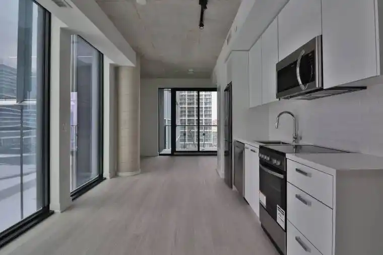 Now available for lease at Bauhaus, this contemporary residence showcases spectacular modern architecture and thoughtfully curated interior design in a prime downtown location.The unit features 9′ ceilings, pre-finished engineered floors, and loft-style exposed concrete details that create a refined urban aesthetic. The open-concept layout is complemented by a European-styled modern kitchen with sleek cabinetry, double-thick stone countertops, an electric cooktop, and built-in oven-designed for both function and style.The spa-inspired bathroom offers double-thick stone vanity counters and quality modern finishes, delivering a polished and comfortable retreat. Large windows enhance the natural light, while deep balconies provide ideal outdoor space for relaxation and enjoyment.Residents benefit from high-design hallways, elevator lobbies, and an impressive entrance lobby, along with exceptionally designed bespoke building facilities that reflect the building’s distinctive architectural vision.Ideally situated at 284 King St E, this location offers convenient access to neighborhood amenities, dining, shopping, and public transit.