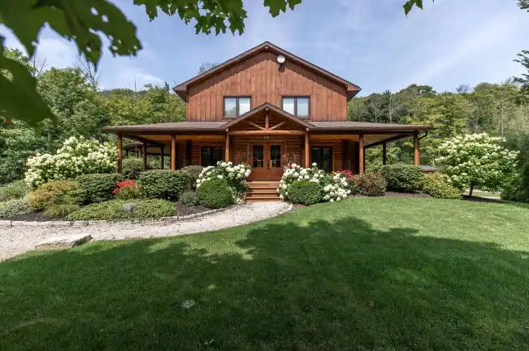 This stunning log home is nestled on the escarpment, offering seasonal water views of Colpoy’s Bay, and breathtaking sunrises. With water access just a stone’s throw away, this property is the perfect retreat for nature lovers and outdoor enthusiasts. Recent updates have transformed this home into a modern oasis. The main floor features new fiberglass, wood look, exterior doors, light fixtures and cafe appliances, creating a bright and inviting space for entertaining or relaxing. Step outside onto the wrap-around covered porch and take in the serene surroundings of the beautifully landscaped gardens. The entire upstairs has been renovated, including new LVP floors throughout, two new bathrooms, including the luxury Master Ensuite and a walk in closet with custom built ins. The detached garage offers versatility, with the option to use it as an entertainment area complete with a wood stove, or as a parking space for two cars. Additional storage sheds provide ample space for all your outdoor equipment and tools. Don’t miss out on the opportunity to own this idyllic log home with all the modern conveniences you could ask for.