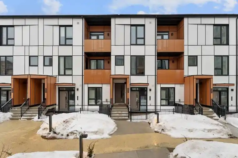 Experience modern, sustainable living at the highly anticipated MPV2 community by Daniels, located at 30 All Nations Drive. This impressive two-storey condo townhouse offers a sprawling 1,185 square feet of interior space with a preferred west-facing orientation that fills the home with warm afternoon light. The main level is designed for effortless entertaining, featuring an open-concept layout centered around a gourmet kitchen with a large functional center island and premium finishes. This level transitions smoothly between dining and lounging areas, providing the spacious feel of a traditional home with the conveniences of a modern condominium.The second floor is a dedicated retreat, thoughtfully designed with two spacious bedrooms, each featuring its own private four-piece ensuite bathroom for ultimate privacy and comfort. The primary suite serves as a true sanctuary, boasting a private walk-out to a balcony-an ideal spot for morning coffee or evening sunsets. This residence is fully equipped for the future, including one storage locker and a dedicated parking spot with an EV charging rough in. Situated in a burgeoning community with easy access to transit, shopping, and lush green spaces, this townhome offers a perfect blend of luxury, functionality, and environmentally conscious design.