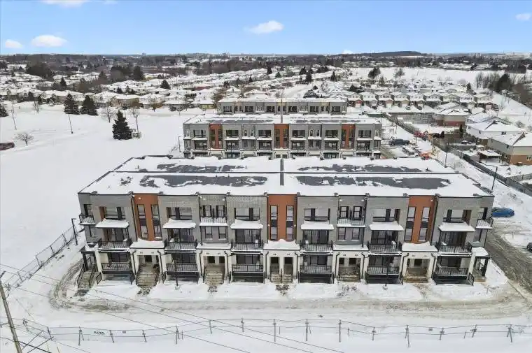 1 YEAR FREE CONDO FEES! Welcome to “The Bobby”-a sophisticated Two-Over-Two Stacked Condo Townhome in the highly sought-after Erinbrook Towns community. Perfect for first-time buyers, professionals, or investors looking for a “lock-and-go” lifestyle without the headache of snow removal or lawn maintenance. Step into a bright, open-concept living space flooded with natural light. The modern kitchen is a showstopper, featuring a sleek dark-toned island, crisp white cabinetry, and subway tile backsplash. Walk out from your living room to a private covered balcony-perfect for outdoor relaxation. A convenient powder room completes this floor. The quiet lower retreat features two bedrooms, a dedicated laundry and additional storage. The main 4-piece bathroom has a premium feel with a double-sink vanity and modern tiling. EXTRAS: ENERGY STAR Certified for maximum efficiency and lower utility costs. 1 Dedicated Parking Space included. High-speed Bell Internet is included in your condo fees! Walking distance to premium shopping, restaurants, and parks. First-Time Homebuyer Deposit Plan available for qualified purchasers. Experience modern, maintenance-free living in one of Kitchener’s most vibrant established neighborhoods. Select images show virtual staging.