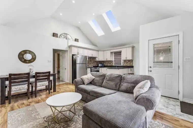 Discover this charming and beautifully updated 3-bedroom bungalow, perfect for first-time home buyers or downsizers seeking comfort and style. The bright, open-concept main floor features vaulted ceilings and skylights that fill the kitchen and living area with natural light, creating a warm and airy atmosphere. The updated kitchen boasts a stunning quartz countertop, stainless steel appliances, and vaulted skylights, making it both functional and inviting. The home also features a newly renovated bathroom and some newer windows, enhancing both comfort and efficiency. Downstairs, you’ll find a fully finished, spacious basement offering ample storage and flexible living space-ideal for a family room, home office, bedroom or recreation area. Step outside to enjoy the privacy of having no rear neighbours, along with concrete paving and a new shed for additional storage. Lane way access at the back of house potential parking possibilities. This well-maintained and immaculately clean home is truly move-in ready. Pleasure to show!
