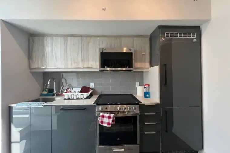 Very convenient location, brand new 1 Bedroom 1 Bathroom condo for rent. Convenient layout and comfort living with open balcony with lake view. Close to all amenities. This unit features an open-concept layout, wood flooring, living room/dining room with w/o balcony. The kitchen is equipped w stainless steel appliances, an integrated fridge & dishwasher, & a sleek glass backsplash. Front-loading washer/dryer. Just a few minutes Stroll to the Bluffs, Lake Ontario, greenspaces, Kingston Rd shops, restaurants, and public transit. Close proximity to downtown. Embark on an unparalleled living experience, with exceptional amenities a media room, party room, concierge services, dog wash, gym, and a rooftop terrace that offers breathtaking panoramic views of the downtown core and the lake. Welcome to a residence that seamlessly blends style, functionality, and convenience.