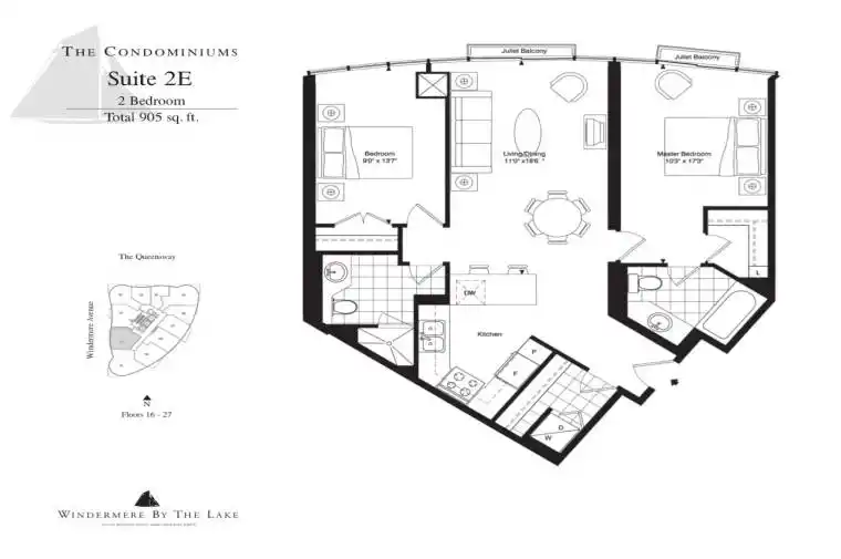 Luxurious Condo * Windermere By The Lake * New Painting, Split Two Bedroom (905 SQ FT) open-concept living area Floor-to-ceiling windows Minutes To QEW, Lakeshore, Across Street is High Park, Walking Distance To Beach And TTC. One Parking Included
