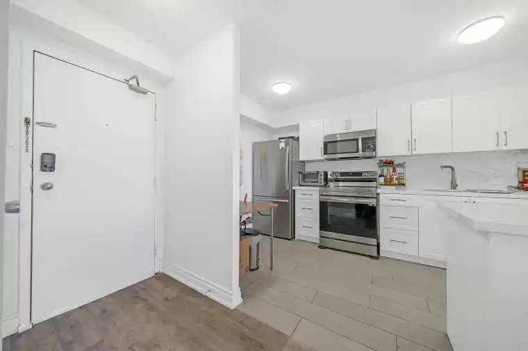 Largest Corner Penthouse 3-Bedroom Suite Extensively Upgraded & Move-In Ready! Approximately 1,100 sq. ft. of spacious living space featuring an open-concept chef’s dream kitchen with central island, new tiles, and ample cabinetry. The primary bedroom includes an ensuite bathroom, window, and closet. The second and third bedrooms each feature a window and closet. Includes in-suite washer and dryer and two central thermostats for added comfort. Enjoy spectacular, unobstructed west-facing views from the large walk-out balcony. Plenty of storage space, plus locker and two underground parking spaces. Meticulously maintained by the owner for many years. This well-managed building offers exceptional amenities: visitor parking, party room, gym, and convenient common laundry room on each floor. Stress-free maintenance fees include all utilities. Prime location, steps to the new LRT station, subway, TTC, and Highways 400 & 401, Close to York University, shopping mall, schools, and parks. Location, Location, Location!