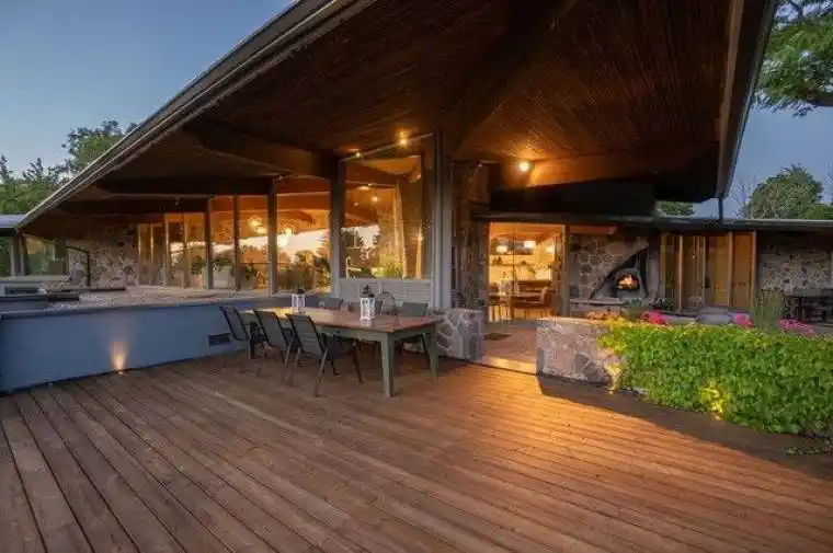 Welcome to an extraordinary estate tucked away behind welcoming stone pillars and a winding forested driveway! This is a work of art designed by the legendary Grant Whatmough and Gardiner Cowan, with distinctive Frank Lloyd Wright style of Architecture. This iconic Mid-Century Modern residence is gracefully integrated into 32 acres of majestic land, where nature and architecture exist in perfect harmony. From the moment you approach the stunning entry door, you’re drawn into a world of timeless design and serene beauty. This home is lovingly maintained with extensive renovations, while preserving the character and soul of this home, Including Floor-to-ceiling windows bring the outdoors in, Stone fireplaces indoor and out, original stone walls and impressive wood beams throughout. Spanning approximately 5,000 sq ft, the main residence features 6 bedrooms, 7 bathrooms, an office, a meditation room, and a separate nanny suite. Multiple terraces and decks surround the home, offering breathtaking views of the land, and a tranquil lake creating the feel of a private luxury retreat. This property features a rare second home- fully renovated and approximately 3,500 sq ft-offering 3 bedrooms, 4 bathrooms, and a massive loft space! This second home is ideal for an extended family! There is an additional Yoga studio with an outdoor shower! a Detached garage/ workshop, a charming cedar Cabin with Sauna and Cold plunge, a Covered cabana for entertaining or relaxing on the property. This is a once-in-a-lifetime opportunity to own an architecturally significant estate in the prestigious King Township. With unmatched privacy, lush surroundings, and two beautifully appointed homes, this property is truly a timeless work of art. Don’t Miss it!