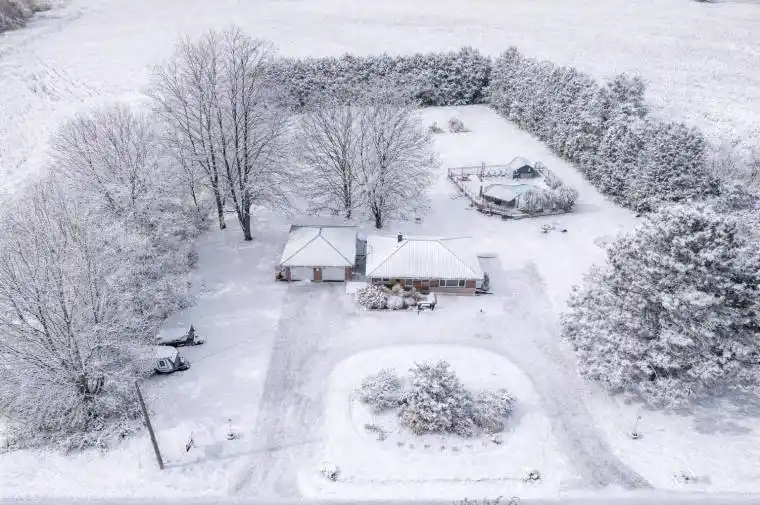 Country properties of this calibre are rarely offered. Welcome to 1822 Spragues Road – a beautifully upgraded red brick bungalow set on 1.56 acre lot. From the moment you arrive, the circular drive, landscaped front yard, and large detached garage create exceptional curb appeal. Step inside to find luxury vinyl plank flooring and recessed lighting throughout the main level, setting the tone for a bright, modern interior. The open-concept living and dining area features a large front-facing window and flows seamlessly into the fully renovated custom kitchen. Designed for both style and function, it showcases leathered quartz countertops, a propane stove, new dishwasher, and a sleek slim rangehood/microwave combination. Three well-sized bedrooms with closets are located on the main floor, along with an updated 4-piece bathroom. The finished basement expands your living space with an oversized bedroom, a 2-piece bathroom (with room to add a shower), and a versatile recreation area ideal for a home office, games room, or family retreat. Ample storage throughout – including coat closets, linen closets, and pantry space – ensures practical day-to-day living. Outdoors, privacy is paramount. Towering cedars frame the property, while the heated in-ground saltwater pool is surrounded by multiple lounging areas – perfect for entertaining, relaxing in the sun, or enjoying evenings beside the fire bowl. For those seeking a touch of country living, the property also features a chicken coop and multiple fruit trees. The location is exceptional: situated on the Ayr school bus route, directly across from Sudden Tract Nature Trail, just 3 minutes to Cambridge, 6 minutes to Ayr, 8 minutes to Paris, and 10 minutes to Highway 401. Major updates include: Furnace & A/C (2020), Attic Insulation (2020), Windows & Doors (2021), Well (2021), Septic (2021), Pool (2021), and more. Full upgrade list available upon request.