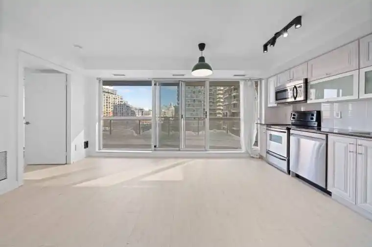 Parking and a private locker are included in the lease price which is a rare and valuable bonus in Liberty Village. Welcome to 100 Western Battery Road #401, a thoughtfully updated one-bedroom condo in the heart of Liberty Village. You’ve got a full four-piece bathroom. To your left, a spacious coat closet + a stacked washer and dryer. The suite then opens into a bright, open-concept kitchen and living area that has recently been upgraded. The kitchen has been renovated with new oak cabinetry, upgraded stainless steel appliances, and clean, modern finishes. White oak-stained flooring runs throughout the space. The layout offers excellent flexibility, allowing you to make the space your own whether that means a defined dining area, a work-from-home setup, or a more expansive lounge feel. Large sliding doors span the living room wall and lead to a generously sized, covered east-facing balcony. The bedroom is quietly set apart from the main living area and offers a comfortable, practical footprint. With a proper closet and enough room for a full-sized bed, it achieves that ideal balance of comfort and functionality. Beyond the suite, the building offers a strong selection of amenities. Residents enjoy access to a fully equipped fitness centre, indoor pool, party room, and guest suites. The King Liberty pedestrian bridge is just outside your door, providing seamless access to King Street West and the TTC, making commuting downtown or across the city effortless. Metro, No Frills, Shoppers Drug Mart, GoodLife, Altea, along with countless cafés, restaurants, and local favourites that define Liberty Village’s vibrant energy are all nearby.
