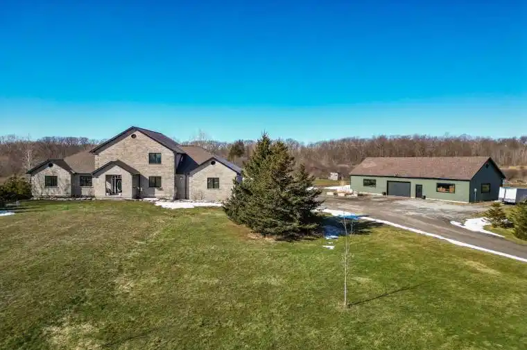 Enjoy the peace & tranquility of nature. Whether you are a hobbyist, a car enthusiast, or someone who craves space, you may just fall in love with all this property has to offer. Nestled on a 7.46-ACRE property backing onto meadows, trees, and SHAGBARK NATURE TRAIL, this 2850+ sq ft home offers the country “retreat” feel with tasteful updates and finishing touches. The approx 1638 sq ft detached garage and workshop is a “dream addition” to the existing attached garage. Inside, the home has been thoughtfully transformed with an updated kitchen and remodeled areas that create a seamless, open-concept space. Beautiful flooring spans both the main level and the upstairs. The heart of the home is the stunning kitchen, boasting a 10′ x 4′ ISLAND that invites friends & family to linger, & a WALK-IN PANTRY that adds that authentic country living feel. Adjoining great room features a cozy GAS FIREPLACE & views of the grounds from the windows. The dining area, perfectly positioned to enjoy the country setting, offers VAULTED CEILING & views of the backyard. Recognizing the needs of country living, the mudroom area (off grg) has a spacious walk-in closet for coats & boots. A functional main floor layout also includes laundry rm, office & a versatile den with a large closet & access to mn fl bathrm so it could serve as a bedroom if needed. Upstairs, four bedrms feature engineered hardwood flooring, including a primary bedroom with a 4 pc ENSUITE with double sink vanity. There is also another 4 piece bathrm. Basement offers potential with a separate entrance. Many updates including furnace (approx 2022), Septic system & cistern (approx 2020). Outside, follow the private backyard trail to Shagbark for a hike or enjoy a quiet moment on the back bench listening to song birds. Located just minutes from the charm of downtown Ridgeway, beaches of Lake Erie, Crystal Beach, and easy highway access, this property offers the ultimate “retreat” with modern convenience.
