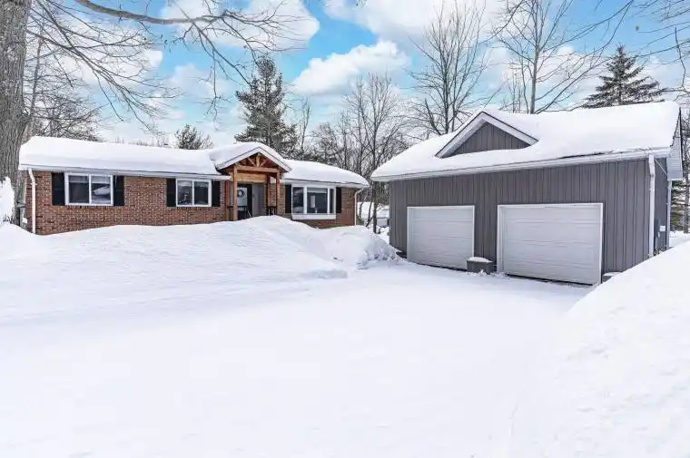 RARE FOREST-BACKED BUNGALOW WITH OPEN-CONCEPT LIVING & UNMATCHED CONNECTION TO NATURE! Set well back from the road among the trees, this beautifully finished bungalow feels like a private retreat where everyday life is centred around nature, fresh air, and time outdoors. The 0.896-acre lot backs onto forested agricultural land and offers rare access from the backyard into approximately 20 sq km of lush forest, so you can step straight from your lawn into nature for quiet walks, serenity, and a healthy, active lifestyle. Outside, interlocking walkways, colourful flower beds, and an irrigation system create a vibrant, beautifully maintained setting around an inground pool and a two-tier deck that give the backyard a spa-like feel. A large circular driveway leads to a detached double garage with an electrical panel, while inside, the bright main level features an open concept layout that keeps the living room, dining room, family room, and upgraded kitchen connected for easy everyday living. The kitchen is finished with quartz counters, stainless steel appliances, a walk-in pantry, and a large island with built-in electrical, and opens to a heated sunroom with Italian tile, panoramic forest views, and a walkout to the deck. The main level boasts sleek hardwood flooring, pot lights throughout the open living area, three comfortable bedrooms, and two full baths, while the family room is anchored by a natural gas fireplace with a floor-to-ceiling surround for cozy evenings in. The finished basement rec room offers extra living space for hobbies or movie nights, along with a large storage area and convenient laundry facilities, and the home is freshly painted throughout with updated windows, furnace, roof, front closet, and doors. Bringing together peaceful surroundings, unmatched forest access, and carefully designed living spaces, this #HomeToStay delivers a beautiful retreat in a rare natural setting that inspires wellness, comfort, and everyday tranquillity.