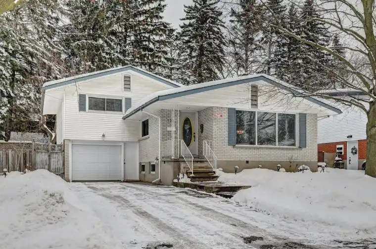 Located in desirable Forest Hill area of Kitchener on an 80 foot wide lot on a tree lined street. Lovingly cared for home with same owner for 48 years. 3 bedrooms plus a main floor den. Deck off main floor den. Primary bedroom with two closets. Kitchen and bathroom both updated over the years. Eat-in kitchen. Furnace and A/C replaced June 2024. Windows replaced over the years (except 1 window in basement). Windows in kitchen, dining room, and front windows are oversized. Plenty of natural light. Ceramic tiled flooring in foyer, kitchen, hallway, and bathroom. Hardwood floors in living/dining areas, bedrooms, and den. Carpet free home except for in a storage room in basement. Plenty of storage space in home. Rec room. Oversized single garage with entry to inside of house and entry from front exterior. Covered front porch. Armour stone retaining wall at back. Ample space in the side yard and back yard. Beautiful quiet mature area.