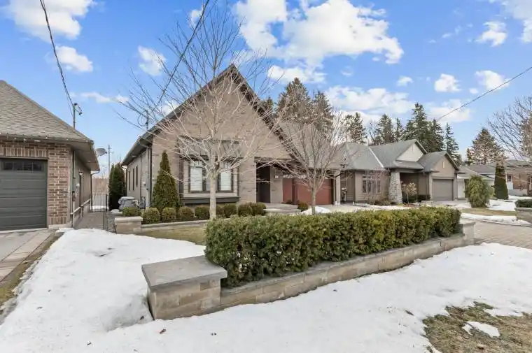Shows Like a Model Home. Inspired Custom Bungalow Finished to Absolute Perfection. This beautifully designed custom bungalow is a true showpiece, finished in the finest materials and showcasing exceptional pride of ownership throughout. From the moment you enter, you’ll be captivated by the bright, open-concept main floor plan and impeccable attention to detail. The designer kitchen is a standout, featuring soaring cathedral ceilings, quartz countertops, a centre island, and seamless flow into a spacious family-sized dining area – perfect for both intimate dinners and lively gatherings. The stunning great room offers rich hardwood floors and a cultured stone gas fireplace, creating an elegant yet inviting space to relax. Step through the impressive 8-foot custom doors and discover your own private backyard oasis. The primary retreat is generously sized and thoughtfully appointed with a walk-in closet and a luxurious 5-piece ensuite bath. The professionally finished lower level is equally impressive, featuring maintenance free vinyl plank flooring and large above-grade windows filling each room with natural light. This level features two additional bedrooms, a massive games room, a cozy recreation room, and a customized 3-piece bath – offering versatile living space for family and guests alike. Over $100,000 has been invested in exquisite custom stonework and professional landscaping, including a stone driveway, walkways, patios, and beautifully curated gardens – delivering exceptional curb appeal and a backyard designed for both serenity and entertaining. A rare opportunity to own a home that truly shows to perfection.