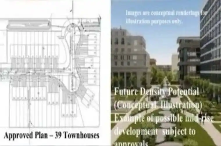 39 Townhouse Development Approved – 340 Palmer Rd, Belleville Residential development land of approximately 4.65 acres with a previously approved project for 39 townhouses, allowing a builder to proceed with development subject to normal municipal requirements. Certain larger lots may allow the addition of garden suites (rear yard units) which can be submitted to the City together with the architectural interior plans, creating the potential for additional rental income, subject to municipal approvals. The property is located in a growing residential area close to Highway 401, Belleville General Hospital, schools, shopping, and public transit. The City of Belleville has adopted policies supporting increased residential density, allowing the possibility to explore mid-rise or higher-density development, subject to municipal approvals. A conceptual rendering illustrating up to 459 residential units was previously presented to the City for discussion purposes only and is for illustration only. All offers welcome.
