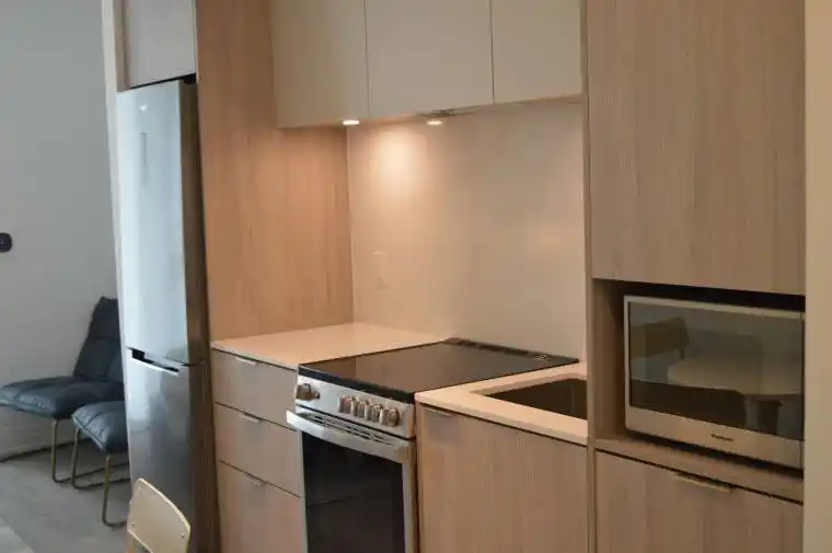 Bright & Modern Open Concept Bachelor Unit Floor To Ceiling Window, Murphy Bed Attached, with a private locker for added convenience. Bright open-concept with walk-out to the balcony. Located At One Of Toronto’s Finest Condominium Residents On The Waterfront, Plenty Of Natural Sunlight .Modern Kitchen W/ S/S Appliances, Built In Dishwasher, Quartz Counters, Custom Backsplash. The Front Door Of This Gorgeous Home Is A one-minute Walk To The Lake! Perfect For a single professional. *Parking May Be Available To Rent Within Building* enjoy a world-class amenities, including a fully equipped fitness Centre, outdoor pool, yoga studio, party room, rooftop terrace with BBQs, and 24-hour concierge services. The building is also energy-efficient and well-managed, ensuring comfort and peace of mind. Located in the heart of Humber Bay Shores, this condo places you steps away from waterfront trails, parks, boutique shops, trendy cafes, and fine dining. access to the Gardiner Expressway easy commuting to downtown Toronto or the Airport.