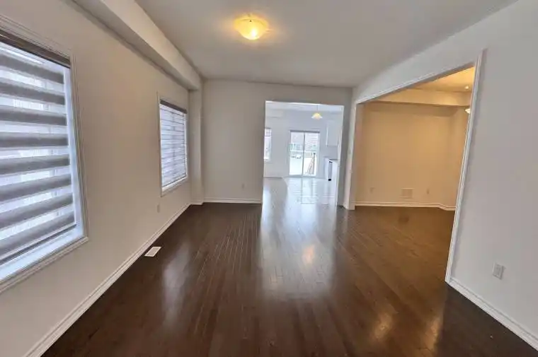 Bright and spacious detached home for lease featuring a double-door entry and a two-car garage with convenient access to the house. This impressive 2,663 sq. ft. home offers 4 bedrooms and 3 washrooms. The modern kitchen is equipped with stainless steel appliances, a center island, and quartz countertops. Enjoy a huge living room, formal dining area, and an open-concept layout with a separate formal family room. The second floor includes a primary bedroom with a 4-piece ensuite, along with three generously sized bedrooms and a shared 4-piece washroom. Zebra blinds are installed on all floors. A huge backyard provides plenty of space for relaxation and entertainment.