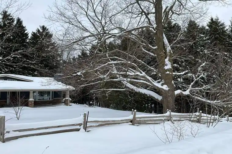 This private 1-acre setting has an expansive 264-foot frontage on the Fifth Line and the corner lot borders Sideroad 27 to the north. In 1861 the May School was built on this very lot and after 100 years of local education it was removed when Ross R. Mackay school opened. This home features great curb appeal and the lot is framed with a timeless split rail fence. The trees planted during the century old schoolhouse of the past provide mature varieties of pine, maple, and spruce in a serene sheltered space to enjoy nature. Thoughtfully placed Apple trees for baking, cherry tree for beauty and white birch for uplighting add to the beauty of this lot. The dual entrance u shaped driveway offers loads of parking for family toys. The double detached insulated garage with hydro has great possibilities. The 6-seater Artic Spa privately nestled in ornamental shrubbery will keep you outside all year long. Neighbouring forests, ponds and the adjacent rolling hills provide serene views. Go for a short stroll down the fifth line to the Elora-Cataract Trailway, famously know for hiking, biking and cross-country skiing. The no maintenance covered 10×49 front porch with composite decking is a versatile space for relaxing, entertaining and enjoying the outdoors. There is a large fenced in raised vegetable garden to ease your grocery bill and an A-frame storage shed for garden tools. The fern field is lush, maintenance free, and so pretty when its dancing in the breeze. The cozy 3+1 bed 2 full bath home has been well cared for and features 2 wood burning fireplaces, reclaimed maple floors, eat in kitchen with walkout to a large composite family deck. The fully finished basement features a large rec room, 4th bedroom, full bathroom, two office/work spaces and is accessible by a separate entrance. The above grade oversize egress windows offer good natural light. The wood stove has a propane line for future conversion. BBQ has a quick connect. New Furnace Jan 2026 with 10 yr warranty.