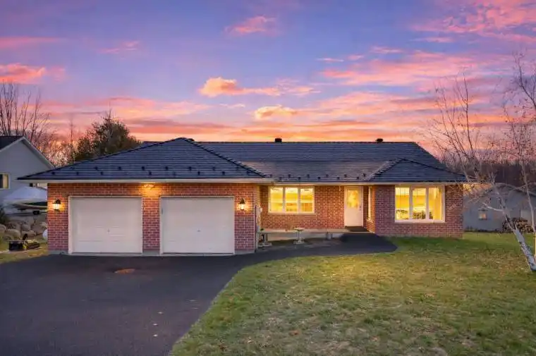 This beautifully designed bungalow blends modern efficiency with natural serenity. Elevated on a gentle knoll & set on a 0.61-acre lot backing onto private woodland, this home offers exceptional space, comfort & thoughtful craftsmanship. Inside, wide hallways, bird’s-eye hickory hardwood floors, a sun-drenched living room with a soaring vaulted ceiling & four spacious bedrooms set the tone for quality living. A front office provides the perfect workspace for professionals, a home-based business, or a 3rd bedroom on the main level. The open kitchen features abundant cabinetry & pantry storage, which seamlessly flows into a dining space that leads out to a large deck, ideal for relaxing or entertaining, overlooking the peaceful, manicured yard. The main level also includes 2 large bedrooms that flood with natural light. The spacious primary suite offers a walk-in closet & 3-pc ensuite with step in shower. A 4-pc main bathroom, convenient laundry room & inside access from the oversized double car garage complete this level of the home. The fully finished walkout basement offers outstanding multigenerational living or rental potential! Complete with its own kitchen, bright & spacious living area with private entrance, 2 large bedrooms, a 4-pc bath & in-suite laundry. Choose to keep this space for yourself & you’ll have almost 3500 sq ft of finished living space. Valuable upgrades include a strengthened aluminum-shingled roof with a 50-year lifespan, a Hydro One solar contract with an estimated $45,000 remaining return, a rubber-paved driveway & a new water heater. The large backyard shed with hydro provides abundant workspace & storage. The partially fenced yard offers the perfect spot for pets to roam. Freshly painted, meticulously maintained & surrounded by friendly neighbours, this home is truly move-in ready. Experience peaceful living, energy savings & the comfort of a welcoming community – all just minutes from Lake Simcoe’s shoreline in beautiful Ramara.