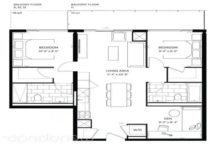 Brand New 2 Plus Den Condo Located At Fast Growing Neighborhood Of Downtown Toronto. Open Concept, Spacious And Bright, Big Balcony Connected To 2 Bedrooms, Den Could Be Used As The 3rd Bedroom. Close To All Amenities, Ymca, Ttc, Easy Access To Hwy