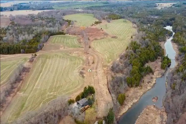 From the high point of this 160 scenic acres, about 100 of which is productively rolling farmland, you’ll take in wide views of the verdant countryside and peaceful horizons beyond. Wander down the grassy slopes into mature cedars to view a full kilometre of the Eramosa River, some of it forming a natural boundary with the village of Eden Mills on the other bank. This property offers a rare mix: good agricultural land alongside another 60 acres or so of woodland, some with river access. And three paved road frontages. Truly a productive and bucolic rural setting, quietly tucked away, yet just 45 minutes to Pearson International Airport. An 1880’s stone farmhouse, newly shingled, sits just up the old lane surrounded by century old maples. And nearby, the ruins of an old stone barn present another enchanting opportunity. It’s the kind of property that pretty well offers it all: productive agriculture land with riverside walking trails and more than one spectacular new homesite available if completing the old stoney’s partial renovation doesn’t appeal. In fact, a new maple-lined driveway to the loftiest vantage point is already waiting for you. This may be one of the soundest possible long-term investments you can make, while enjoying land that works as hard as it inspires. Realtors say all the time that “Opportunities like this don’t come along very often.” Believe it this time.