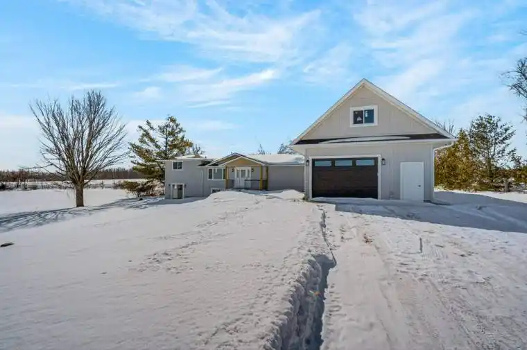 Lakeside Luxury Living in King’s Wharf Estates on Pigeon Lake. Welcome to King’s Wharf Estates, an exclusive executive subdivision consisting of 21 estate lots ranging from approximately 1-2 acres. This sought-after waterfront community offers residents a private dock within a beautiful beach park area on the Trent-Severn Waterway, located just minutes from your doorstep. Enjoy endless boating, fishing, swimming, and watersports with family and friends. Situated on a generous 1.85-acre lot with expansive views, this stunning home has been completely renovated down to the studs and rebuilt with exceptional craftsmanship and attention to detail. Offering more than 2,700 sq. ft. of finished living space and multiple walkouts, this home is designed for both comfortable living and entertaining. Step inside from the welcoming covered front porch into the spacious foyer that opens to a bright, open-concept kitchen, dining, and living area. The chef-inspired kitchen features abundant cabinetry, a large 6×8 island, quartz countertops, and a dining area with a walkout to the deck-perfect for outdoor entertaining. The great room offers plenty of space for family gatherings and relaxation. The home features 4 bedrooms, 3 bathrooms, a dedicated office, a spacious rec room with walkout, and a well-designed laundry/mudroom with ample cabinetry. The private primary suite is thoughtfully positioned away from the other bedrooms and includes generous closet space and a luxurious ensuite with a beautiful soaker tub. An oversized attached double-car garage provides ample space for vehicles and a workshop, with a second-level loft offering over 600 sq. ft. of additional space. Conveniently located just 10 minutes from the historic town of Bobcaygeon, where you will find medical services, shopping, dining, and entertainment. Only 1.5 hours from the GTA, this exceptional property offers the perfect blend of lakeside lifestyle and modern luxury. Make King’s Wharf Estates your forever home