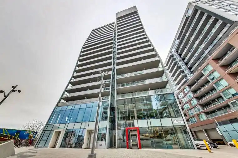Welcome to Riverside Square at 15 Baseball Place, a boutique condo in Toronto’s vibrant Riverside community. This modern, industrial-style suite features an open-concept layout, sleek finishes, exposed concrete ceilings, and floor-to-ceiling windows that create a bright, loft-inspired living space with no wasted square footage. The well-designed one-bedroom plus den layout includes a functional den that is not enclosed, making it ideal for a desk or work-from-home setup.Located in the heart of South Riverdale, you’re just steps from Queen Street East, TTC streetcar service, and the Don Valley trails. Enjoy a dynamic neighbourhood surrounded by local favourites including The Broadview Hotel, boutique shops, trendy restaurants, cafes, bars, and everyday conveniences. Only minutes from downtown with easy access to the Don Valley Parkway, commuting is effortless. Perfect for professionals or urban enthusiasts seeking style, convenience, and a vibrant community. Freshly painted and move-in ready.