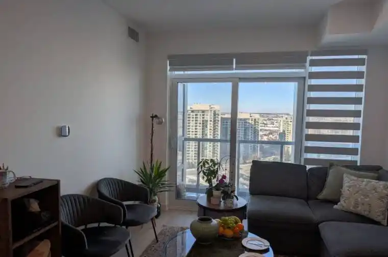 Welcome to Promenade Park Towers – Luxury Living in the Heart of Thornhill! Experience sophisticated urban living in this stunning 1-bedroom condo offering breathtaking, unobstructed views and a beautifully designed open-concept layout. Large windows flood the space with natural sunlight, while the combined living and dining area seamlessly extends to a private balcony – perfect for relaxing or entertaining. This unit comes with modern zebra blinds already installed, offering a perfect combination of style, privacy, and light control. The contemporary European-inspired kitchen is a chef’s dream, featuring granite countertops, premium stainless steel appliances, and ample storage. 9 ft ceilings add to the spacious, airy feel of this elegant residence. Located steps from the Promenade Shopping Centre, you’ll enjoy unmatched convenience with Homesense, Walmart, dining, and retail options right at your doorstep. Residents of Promenade Park Towers enjoy resort-style amenities including a state-of-the-art fitness center, yoga studio, party room and more. Commuting is effortless with VIVA Shuttle service to Yonge-Finch Subway Station and easy access to major highways Hwy 7, 407, 404, and 400.For your peace of mind, the unit features secure keyless entry with a smart lock and door code. Modern luxury, unbeatable location, and ultimate convenience – everything you’ve been looking for is right here at Promenade Park Towers.