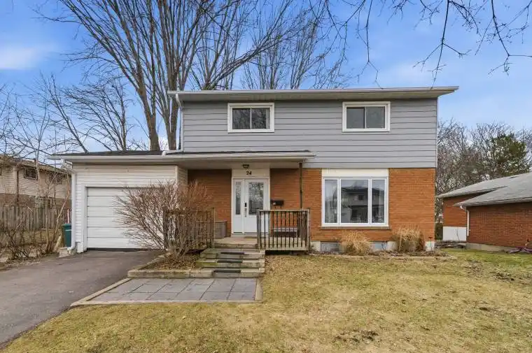 Welcome to 24 Austin Street, a well maintained, move-in-ready 2-storey home designed for those who value both comfort and connection. The main floor welcomes you with a sun-drenched living room that flows effortlessly into the dining area. Whether you’re hosting a dinner party or a quiet family meal, the direct access to the private deck makes indoor-outdoor entertaining a breeze. A functional kitchen and a convenient powder room round out the main floor, ensuring every inch of space is utilized. The upper floor you’ll find all four bedrooms conveniently located on the second level alongside a full family bathroom. The lower level, spacious rec room is flooded with natural light, making it the perfect spot for a home gym, media room, or play area. Plus, the oversized laundry room offers enough storage to satisfy even the most dedicated organizer.Directly behind your fully fenced yard, is a park with lots of green space, and walking path that goes directly to the elementary school. Nestled in a quiet, friendly neighborhood, you’re just minutes away from local amenities and enjoy lightning-fast access to the 401 for an easy commute. Updates include, roof 2022, C/Air 2021, New motor in Furnace 2021 , L/R Window 2019, Hot Water Heater 2017 (owned), Backyard fence 2017, Eavestrough 2025, new bathroom vanities, garage vinyl siding, driveway sealed, freshly painted between 2023-now