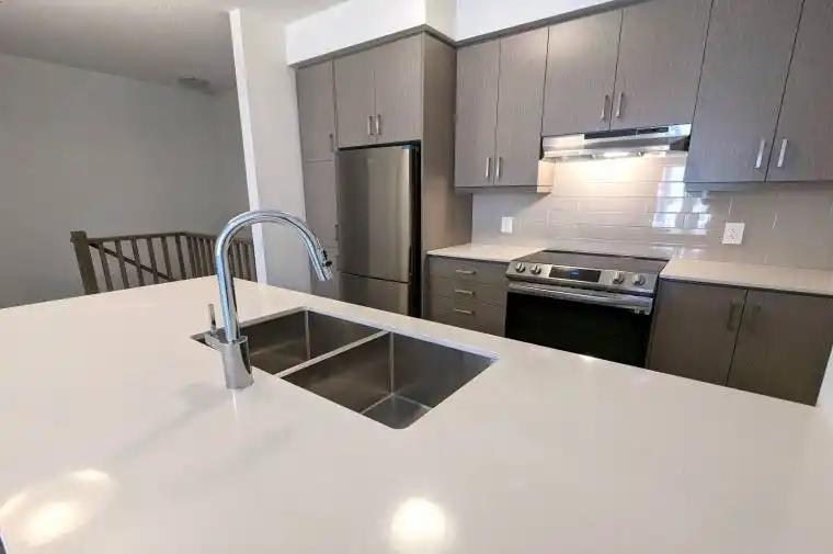 Welcome to this spacious brand new townhome at M2 Towns by Menkes. Freshly painted from top to bottom. Featuring over 1,000 square feet of living space appointed with high quality finishes. The family sized kitchen features a large island with double stainless steel sinks, as well as countertop seating for 3 people, full sized appliances, stone countertops, tiled backsplash, and plenty of cabinetry space. The oak wood staircase leads to a living floor with two bedrooms and two washrooms along with plenty of storage space. Also features an interlocked front patio with a BBQ gas connection which will soon be completed. Comes with 1 underground parking spot and access to amenities in the condo building.