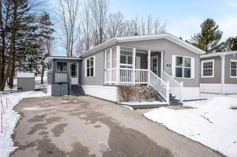 Peaceful Country Living Just Minutes from Owen Sound! Enjoy the tranquility of this well-maintained modular home located just 10 minutes south of Owen Sound in a quiet and friendly community setting. The bright living areas create a warm and welcoming atmosphere and open plan kitchen/living/diningroom make entertaining easy. This comfortable home features a spacious primary bedroom with ensuite bathroom and plenty of closet space. The guest bedroom/office/den offers a practical layout ideal for downsizers, retirees, or those seeking a peaceful retreat. Step outside to relax on the cozy front porch, perfect for enjoying morning coffee. The enclosed side porch provides easy access into the home from the private paved driveway . A mudroom/laundry room is conveniently situated by the side entrance. Surrounded by nature yet close to town amenities, this property offers the perfect balance of country charm and convenience. Lease fee $700.00 monthly, plus $45 water and $133.92 property tax.