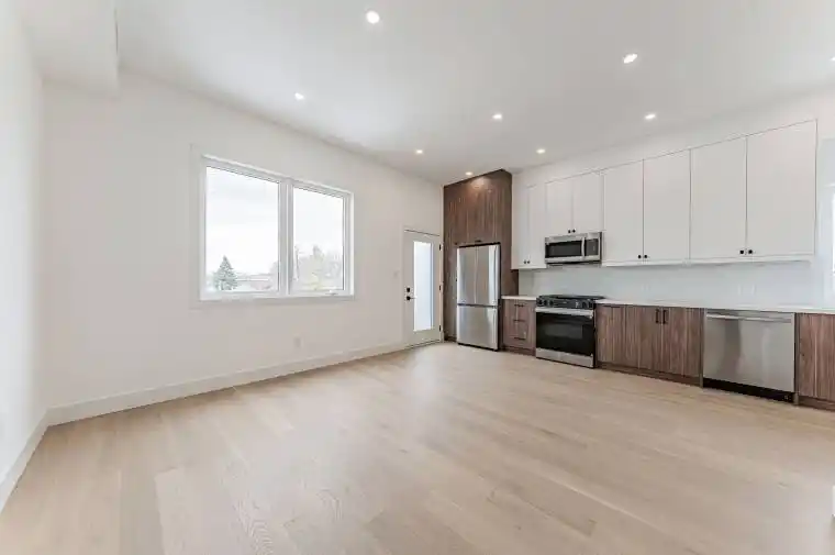 Be the First to Live in This Newly Built Fourplex by ModCity, located in the highly desirable and accessible Leaside community! This modern 3-bedroom, 2-bathroom suite offers 1,150 sq. ft. of thoughtfully designed living space featuring 10-foot high ceilings, large windows and engineered hardwood flooring throughout. Highlights include custom millwork, premium stainless steel appliances (including a gas range!) and high-end finishes. An in-suite stacked washer/dryer brings ease to everyday living and saves you a trip to the laundromat. Smart home features include remote entry access, a smart thermostat, smart appliances and security cameras in common areas for additional peace of mind. Water and Internet are INCLUDED, with Heat and Hydro separately metered for full control over your utilities. Conveniently located only a 5-minute walk from Laird LRT Station makes access to shopping, dining and entertainment across the City a breeze. Street parking is available by permit through the City of Toronto. Ideal for families or working professionals seeking to upgrade to a brand-new residence that boasts comfort, convenience and security within a prime Toronto neighbourhood!