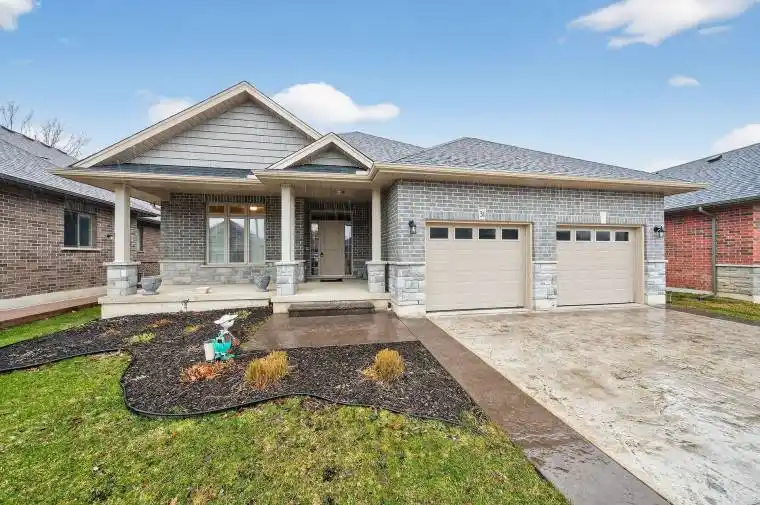 Experience executive life-style in beautiful Port Dover, renowned destination town bordering the banks of Lake Erie’s Golden South Coast – famous for it’s popular attractions & amenities incs Live Theatre, Music in the Park venues, links style golf course, marinas, eclectic shops, funky eateries & world famous beach front. Relaxing 50 min commute to Hamilton – less than 2 hour drive to GTA. Positioned handsomely on 0.21 acre landscaped lot is 2019 “Eggink” built home surrounded by similar style homes/properties situated near end of an upscale cul-de-sac ftrs rear yard abutting small ravine. Prepared to be “smitten” once entering grand foyer where 1,981sf of open concept design is sure impress the most discerning buyer – highlighted w/impressive great room boasting 10ft tray ceilings exuding the warmth of n/g fireplace -segues to Chef’s “Dream” kitchen sporting ample cabinetry, huge contrast island, quartz countertops, tile backsplash, SS appliances & dining area enjoying sliding door walk-out to spectacular 16×24 full length covered rear entertainment porch incs 16×16 grade level stamped concrete patio, 2nd large concrete pad & designer shed w/concrete flooring. Lavish primary suite ftrs massive WI closet & stylish 4pc bath – continues w/2 sizeable bedrooms, 4pc main bath & convenient main floor laundry ftrs entry to oversized 578sf double car garage. Incredibly size 780sf family room showcases 1,981sf finished lower level incs 2nd n/g fireplace, games room, spacious 4th bedroom, modern 3pc bath, multi-purpose room/suitable for bedroom (no window), storage & utility room – definite in-law potential. Extras – premium flooring thru-out, 176sf covered front verandah, brick/stone/gable vinyl sided exterior, concrete double drive w/stamped concrete accents & walk-ways, quality roof/windows, n/g furnace, AC, HRV & 200 amp hydro. Luxurious Dover Living – at it’s finest!