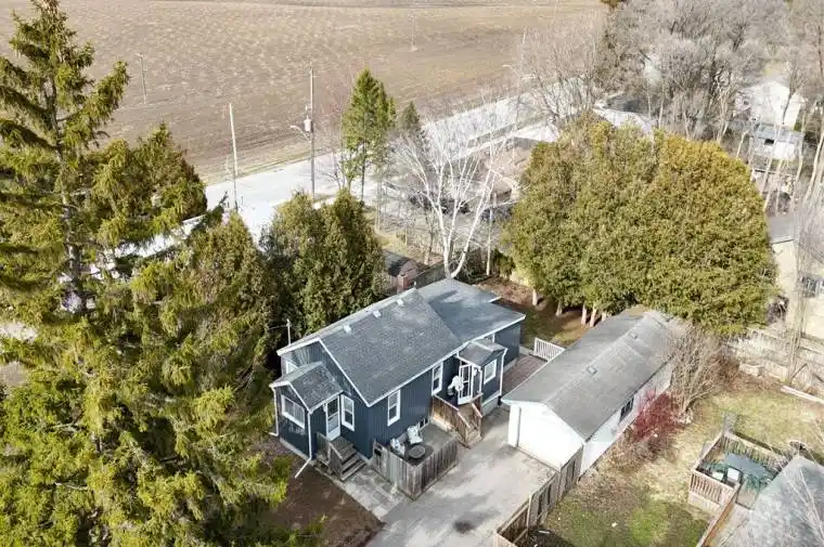 Dashing home on mature private lot, 3 bedrooms PLUS Garage and workshop. This home is so very affordable with many features of note; large living room -dining room space, sunken large master bedroom with large window, brand new laminate hardwood flooring thru-out (2026), separate mud rooms at all 3 entrances, 100 amp breakers with garage hydro 15 amp circuit, owned electric water heater and good work kitchen with space for many chefs! Outside you will be pleased with Mature trees, back privacy fence, firepit, large patio area X 2, big storage shed PLUS workshop with separate secure entrance- brilliant space to work. The garage is neat with concrete floor, generously sized , entrance to shop and garage door opener. There is BIG value for this property on the edge of town around the corner from Laurie Hawkins Public school.