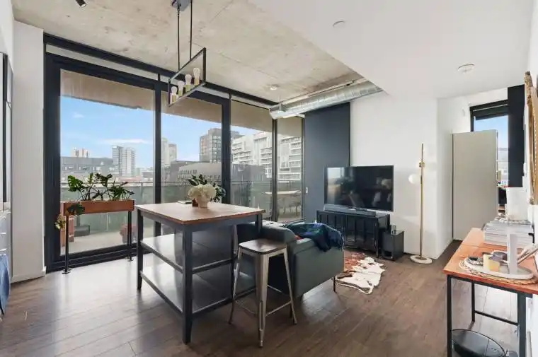 *398 SF PRIVATE TERRACE* Photos prior to tenants moving. Relish in Loft Living at River City 4! This stylish 2-bedroom, 1-bathroom suite features soaring ceilings and expansive windows that flood the space with natural light. Thoughtfully designed with an efficient layout and contemporary finishes, the unit also includes parking and a locker for added convenience. Ideally located just steps to parks, the Distillery District, transit, and the vibrant shops and cafes of Corktown, this is a rare opportunity to enjoy indoor-outdoor condo living in one of Toronto’s most architecturally striking communities