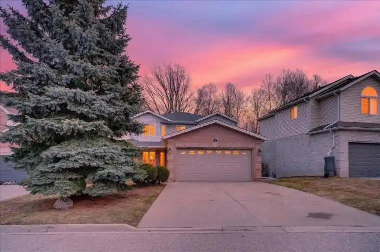 Stunning, professionally renovated 3 bedroom, 4 bathroom home in a superior Idlewood location. Nestled on a premium court walk-out lot, backing onto Briarfield Park Natural Area. Meticulously maintained and loved by original owners. The interior has been beautifully transformed with recent extensive upgrades throughout, including exceptional kitchen by Polwood Kitchens with abundance of full height cabinetry, large island (11′ long), quartz countertops, Stainless Steel appliances (gas stove/oven) and walk-in pantry. Bright with large windows and sliding doors to upper deck with full forest views. The kitchen is open to an elegant Living Room with modern, electric Napoleon fireplace. The large formal Dining Room is perfect for friends and family dinners. The 2 piece Powder Room and Laundry Room is also conveniently located on the main floor. New luxury plank flooring throughout and new wholly white oak staircase with black metal spindles. Upstairs features 3 bedrooms with large windows and new hardwood flooring, including huge Primary with his/her closets and spectacular spa-like 5 piece luxury ensuite with large glass walk-in shower, free standing tub, double vanity with makeup table, quartz countertops and large porcelain flooring tiles throughout. The walkout basement provides lots of light as well as access to the rear patio and forest. Spacious Recroom/Games Room with wet bar, office and 3 piece Bathroom. Don’t forget the stairs from the garage to the basement and abundant storage/workshop under the garage. A great family home on a safe court with excellent neighbours. Minutes to Chicopee Ski Hill, Grand River Trails, Springmount Park, Lackner Park, Idlewood Creek Park, schools, shopping and quick access to Highway 6, Highway 8 & the 401.