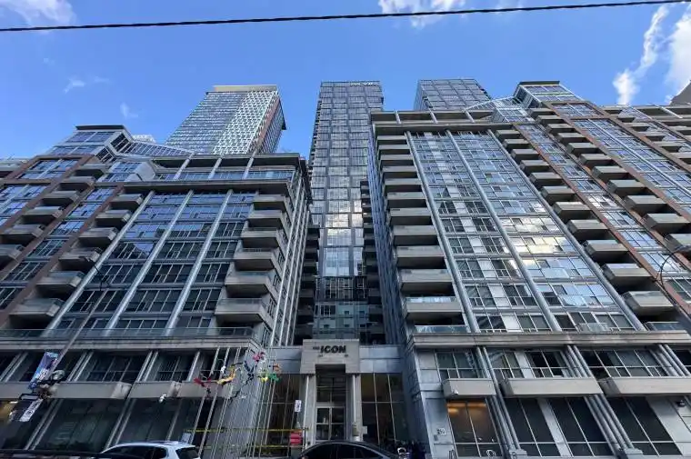 Spacious corner unit in Tridel’s Icon 1, offering approximately 700 sq ft in the heart of the Entertainment District. This bright 1-bedroom plus den suite features dark oak hardwood flooring, a modern kitchen with granite countertops and breakfast bar, and a balcony conveniently accessed from the kitchen. The bedroom includes a double closet, and the unit comes complete with ensuite laundry for added convenience. Residents enjoy premium building amenities, including a fully equipped gym, indoor pool, sauna, media room, party room, rooftop terrace, and 24-hour concierge and security. Ideally located steps to transit, parks, restaurants, and all the entertainment the downtown core has to offer.